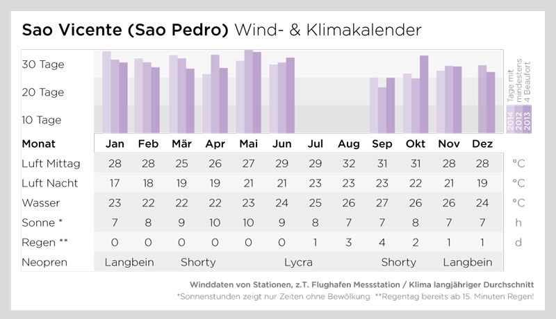 Sao Vicente ist eine Insel der Barlavento Gruppe(Insel über dem Wind), der windigste Ort in den Kapverden. Der Passat der im Sommer auf den kanarischen Inseln für Wind sorgt, verschiebt sich im Winter auf die Höhe der Kapverden. Somit ergeben sich in den Wintermonaten Windstatistiken mit etwa 90% der Tage mit Winde zwischen 15-25 Knoten. Wenn die Winde auf das Gebiet von Sao Vicente gelangen, schafft die Insel einen mächtigen Venturi-Effekt. Der 15 km lange bergigen Kanal komprimiert den Passat. Sobald der Wind bei unserer Windsurfstation auf das Meer trifft löst sich die Komprimierung und der Wind wird erneut beschleunigt. Das bedeutet, dass schwache Passatwindetage, die von der Nordseite mit einer Geschwindigkeit von 10-15 Knoten auf die Insel treffen, durch die natürlichen Inselformationen in 20-30 Knoten verwandeln. Das Surfcenter von Surf-Tribe in Sao Pedro ist somit der ideale Ort für Windsurfer die gerne mehr Wind haben. Schwergewichts-, Starkwind-Enthusiasten und Speed-Freaks kommen hier Voll und Ganz auf ihre Kosten.